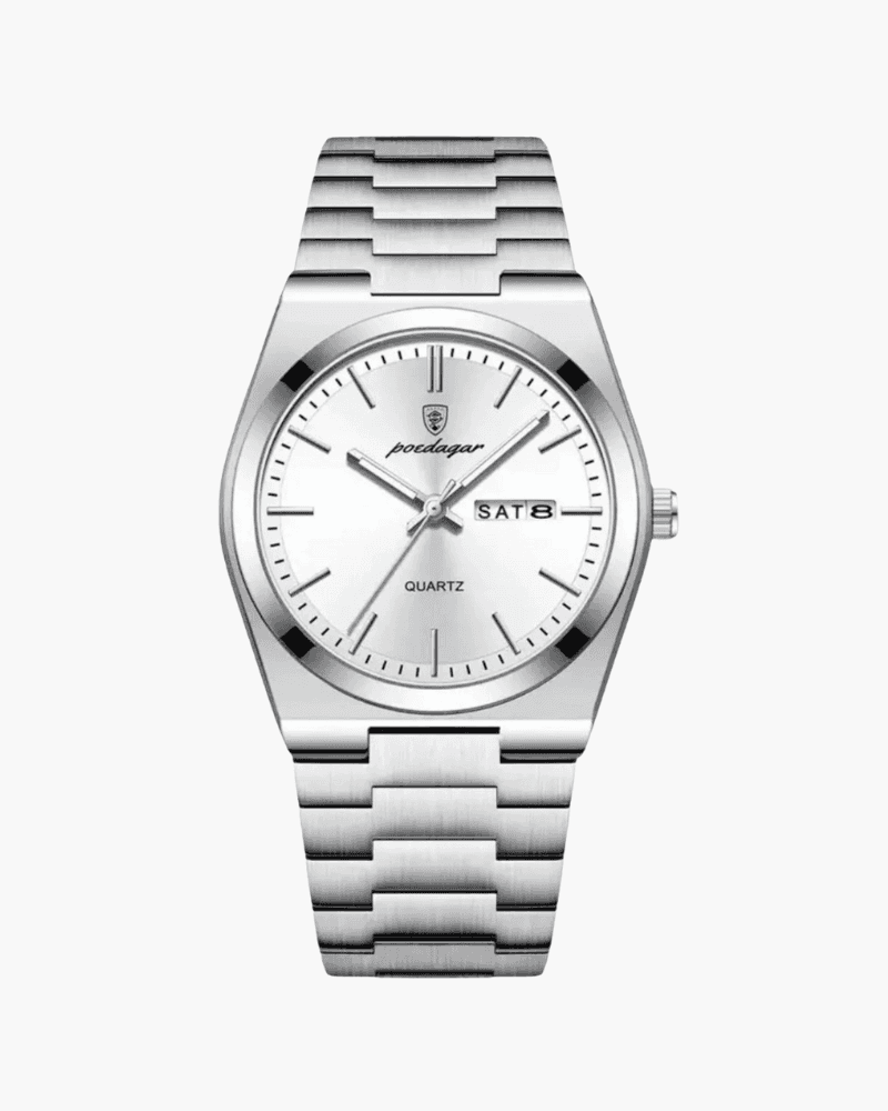 Este reloj combina una funcionalidad audaz con una estética refinada. Con una robusta caja y correa de acero inoxidable, Está disponible con elegantes esferas negras o sofisticadas esferas blancas. Ideal para profesionales y entendidos, cuenta con un diseño clásico y deportivo con funciones de cronógrafo.